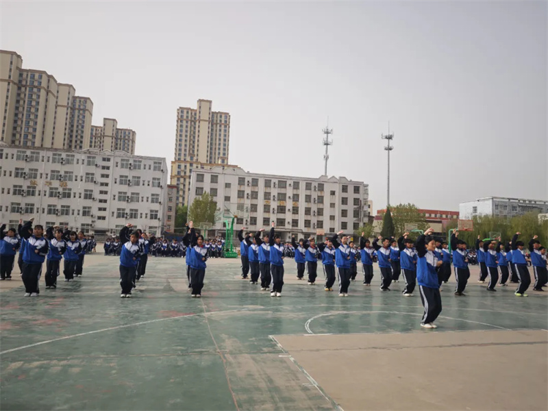 精心筹备:筑牢基石,蓄势待发。自3月15日起,广播体操训练的大幕正式拉开。体育组教师充分利用体育课及课外活动时间,分班级进行细致的动作教学与指导。同学们热情高涨,积极参与每一次集中训练,从分解动作到完整连贯,逐步精准掌握了广播体操的每一个技术要领。各班级还自发组织课余练习,不断精雕细琢动作细节,提升动作的整齐度与表现力。班主任老师全程跟进,为同学们加油鼓劲,整个校园洋溢着浓厚的运动氛围与激情。
