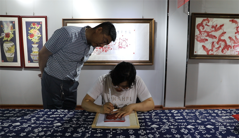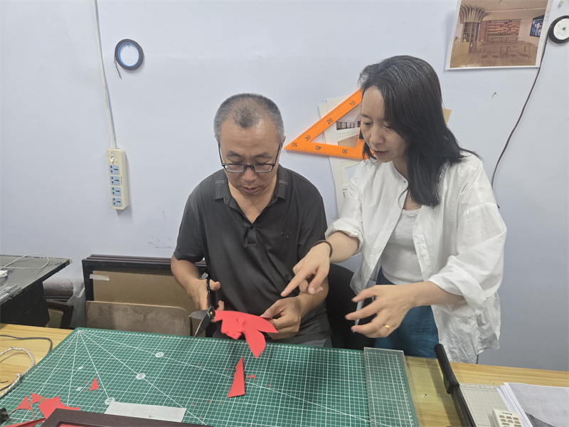 在剪纸艺人与专业教师的共同指导下,同学们从基础的折纸、描样起步,逐步领悟阴刻、阳刻等核心技法。一双双未来将呵护幼儿成长的手,此时正专注地持剪,游刃于丹红之间。
