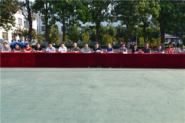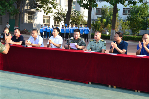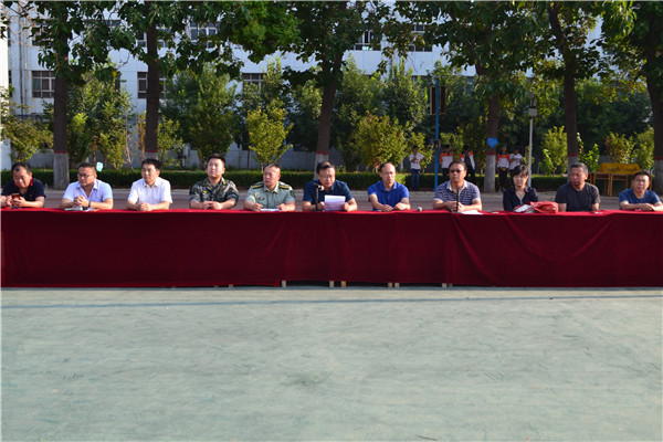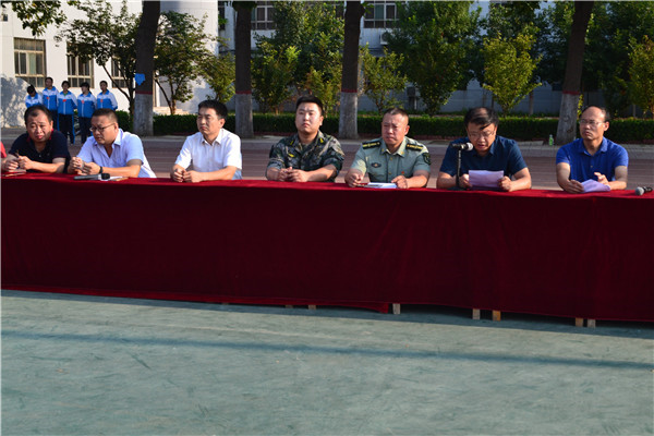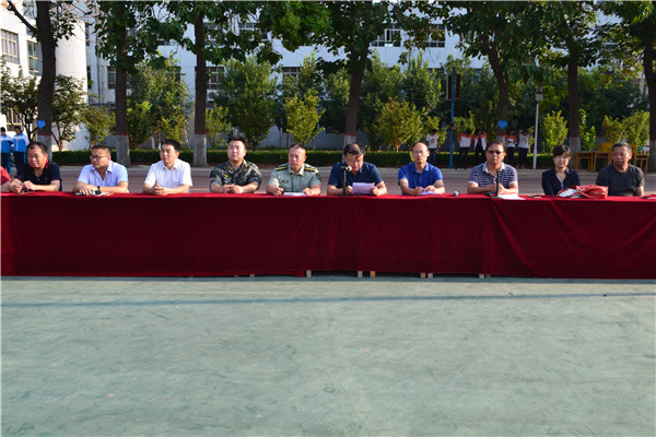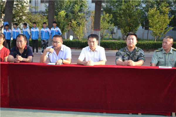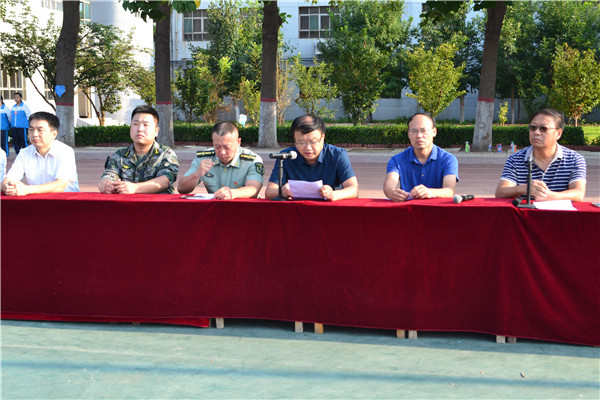 上午7:30,我校2018级新生军训开幕式在操场隆重举行。校长岳国武、党支部书记靳国岩、桃城区军训办公室主任张江泳同志、副校长马成尧、副校长石保真、副校长李永涛及校委会全体成员参加了开幕仪式。开幕式由马成尧副校长主持。