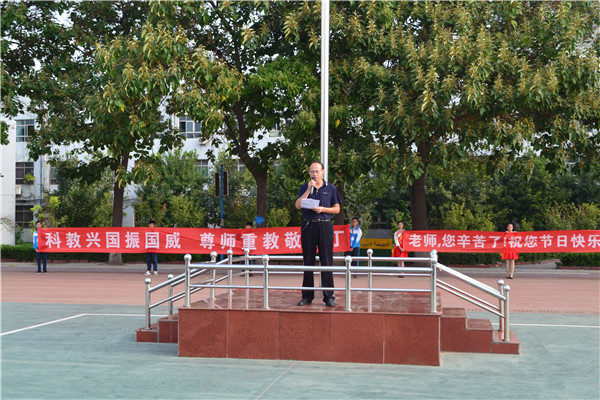 本次活动是由学校团委组织,学生自主策划进行的,无论是歌曲创作、音乐选择,还是节目编排,全部由学生自行完成。活动既锻炼了学生的组织能力,又增强了全校学生尊师敬师的意识,成为学生们送给全校老师最温馨、最有意义的教师节礼物。庆祝活动上,党支部书记靳国岩代表校委会致辞,向老师们以校为家,爱生如子的精神致敬,向兢兢业业、默默奉献的老师们表示衷心感谢,为全体教师送上最美好的祝福。