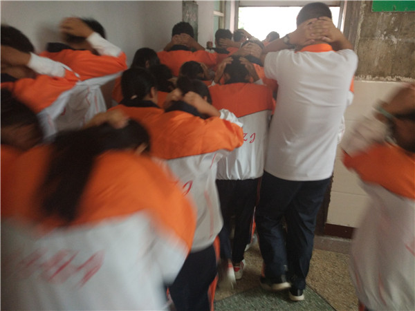 一阵急促的哨声拉开了“升学部安全疏散演练”活动的帷幕,听到警报声,各位班主任立即到达指定位置,疏导学生快速疏散撤离,指导学生弯腰抱头,捂住口鼻,沿着学校指定安全通道快速前进,有序撤离到学校操场的安全地带,随即各班主任清点人数,检查各班撤离情况。