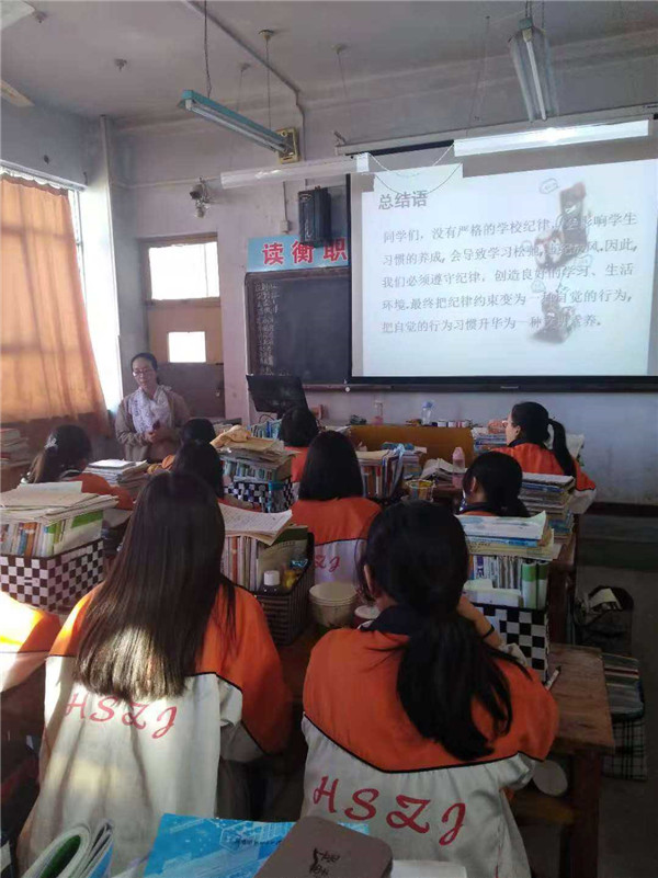 在主题班会课上,各班主任组织带领学生认真学习关于青少年的各项法律法规、安全知识及我校各项纪律管理制度。班主任们各显神通,通过图片展示、情景设定、案例分析、学生讨论等方式,对“校园暴力”、“打架成本”、《学生违纪处罚条例》、校内外安全作了全面细致的讲解,强化了班级管理措施,端正了班风、严明了校纪,增强了学生的纪律性。
