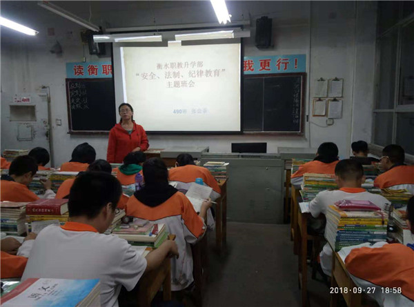 安全是生活的保障,纪律是学习的前提。新学期伊始,为进一步优化学校德育工作,加强学校的纪律教育,同时提高学生知法、懂法、守法、用法的意识,形成人人懂安全,事事讲安全,处处要安全的良好教育环境,构建“教育有方,管理有序,安全稳定”的平安和谐校园,衡水市职教中心升学部政教处利用一周时间,组织班主任开展了“安全、纪律、法制”为教育主题的班会活动,并取得了良好的教育效果。