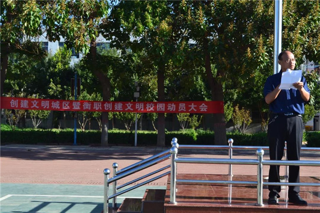 9月17日上午8:00,衡水市职教中心2020年新生军训暨衡职创建文明城区文明校园动员大会在操场召开。马成尧副校长主持大会,校长岳国武、党支部书记靳国岩、副校长李永涛、石保真分别作了重要讲话。5000多名学生和全体教职员工参加了大会。