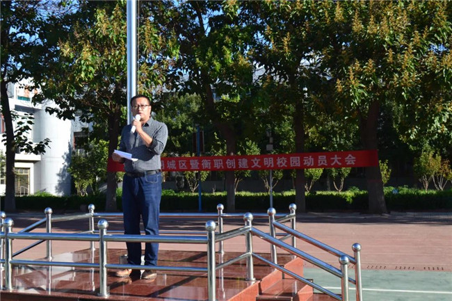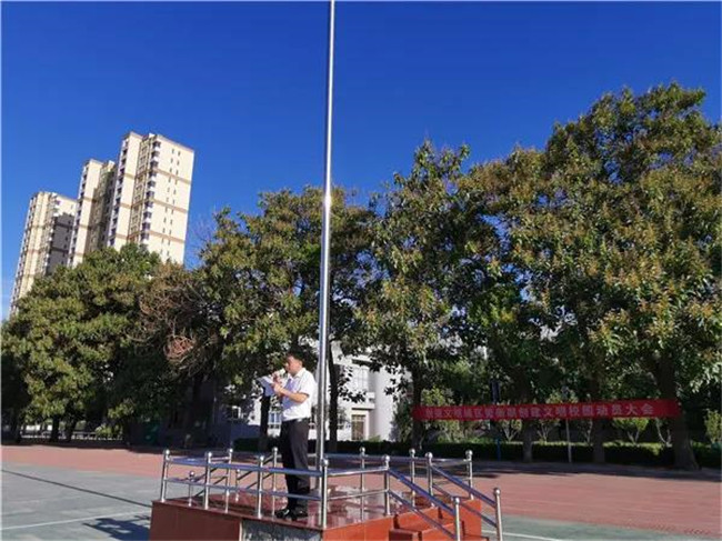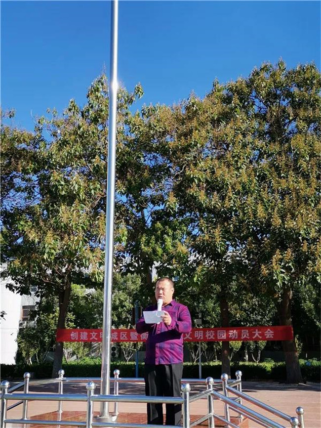 石宝真副校长宣读了“文明校园创建标准”和“文明校园建设倡仪书”。他强调,建设文明校园意义重大,旨在深入学习贯彻习近平新时代中国特色社会主义思想和党的十九大精神,大力培育践行社会主义核心价值观,扎实做好学校精神文明建设工作,进一步提高师生文明素养,营造优美育人环境。