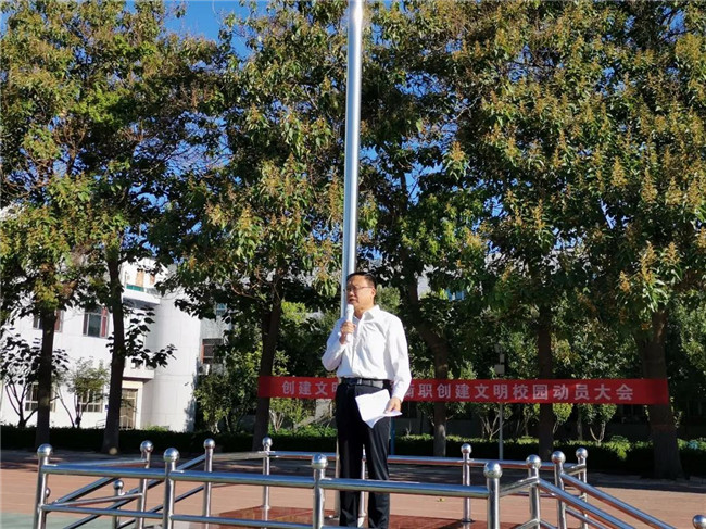 校长岳国武指出,学校要成为文明的发源地,师生要成为最美的文明人。在创建工作中,要久久为功,持之以恒,务必实现四个提升:通过文明课堂的形成,实现教学质量的提升;通过文明行为的养成,实现教育管理工作的提升;通过文明之花的绽放,实现后勤服务、美丽校园的质量提升;通过校园的文明正气,获得合作企业的青睐、实现就业质量的提升。