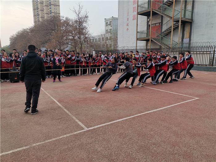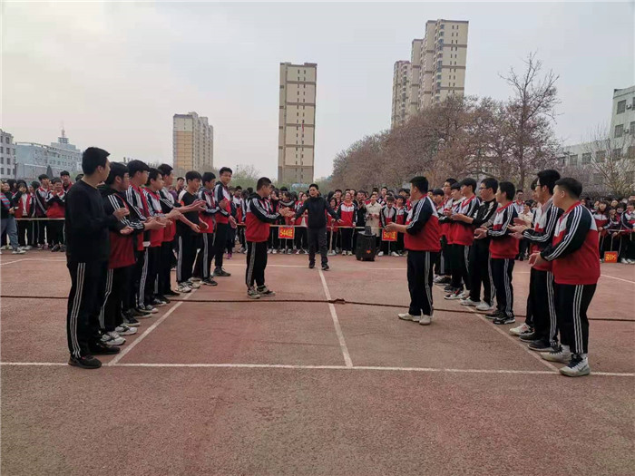 为增强集体凝聚力,强化团队精神,激发学生参与体育健身的积极性,锻炼坚强意志,衡水市职教中心升学系学管处组织高一、高二年级进行了拔河比赛。
