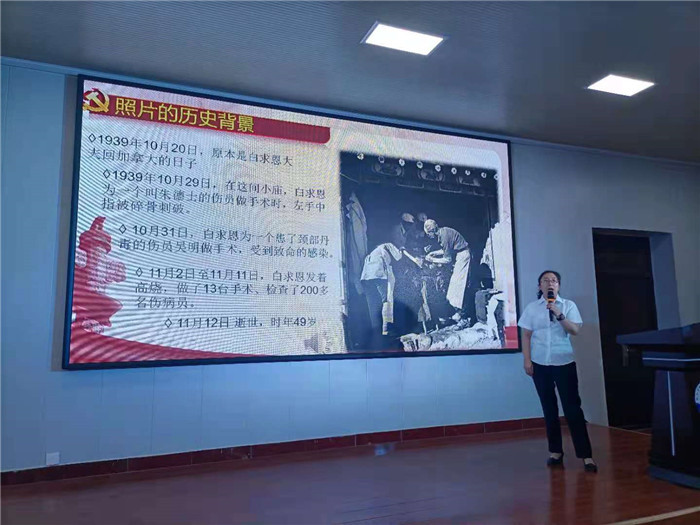 活动中,党员代表分别讲述了“红船精神”、“运河精神”“扶贫精神”、“党的执政优势”以及“抗日战争时期白求恩大夫”等红色经典故事。这些故事警醒我们不能忘记“红色政权是怎么来的、新中国是怎么来的、今天的幸福生活是怎么来的”,我们必须坚定自己的理想信念,将红色精神代代相传。