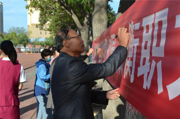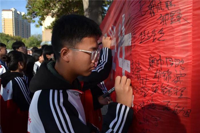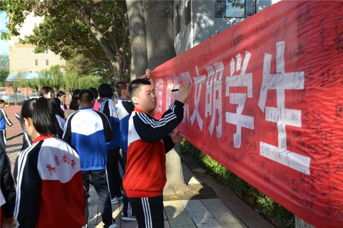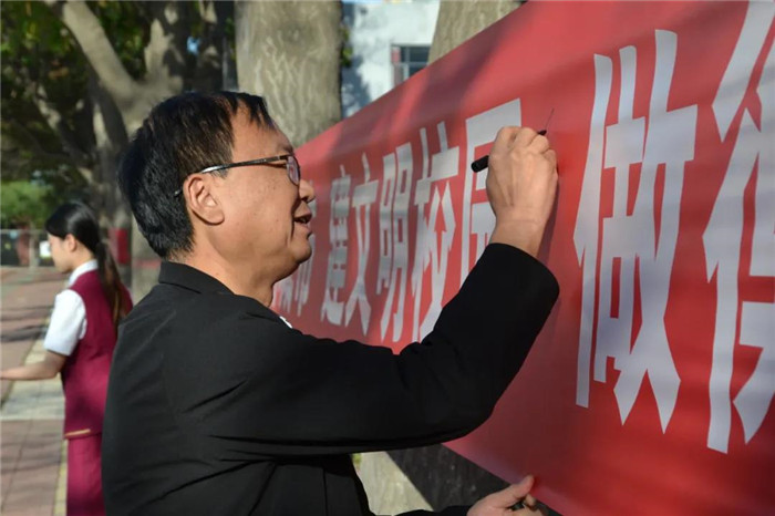升旗仪式后,全体师生举行了“文明有我”签字活动。