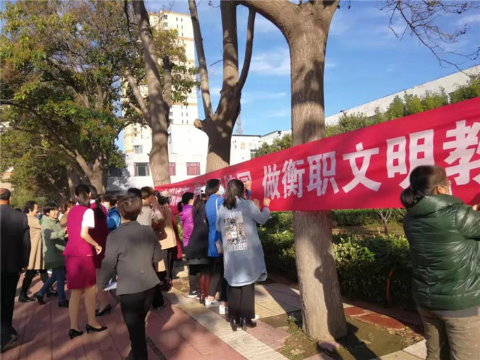 在我市创建“全国文明城市”轰轰烈烈开展之际,10月11日,衡水市职业技术教育中心(桃城技工学校)组织了“做文明师生 建文明校园 创文明城市”的升旗仪式,旨在营造文明城市创建全民动员,人人参与的浓厚氛围,进一步夯实全面宣传、全面动员,全民共建的局面。