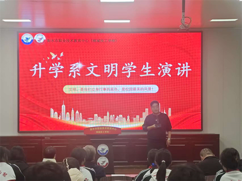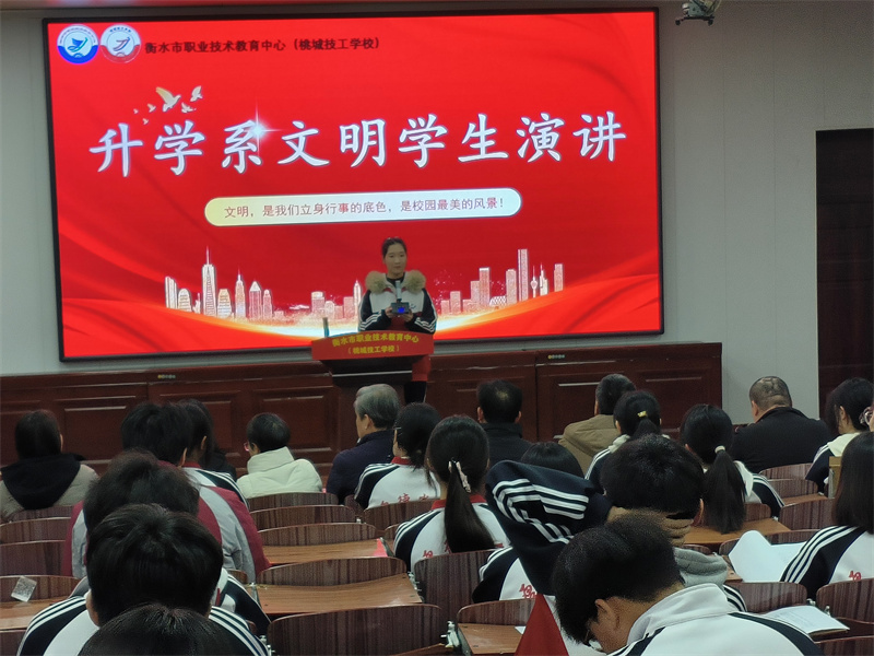 为深入践行社会主义核心价值观,提升学生综合素养,1月14日下午,升学系学管处成功举办“文明学生”主题演讲比赛。副校长李建雨、思政办主任李杰英、团委书记李鹏、升学学管处主任杜占星及各位应邀老师出席活动并担任评委。