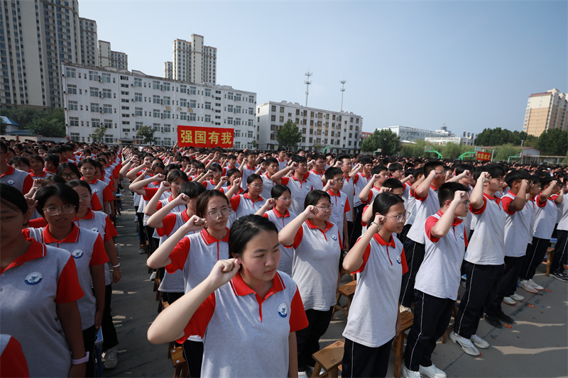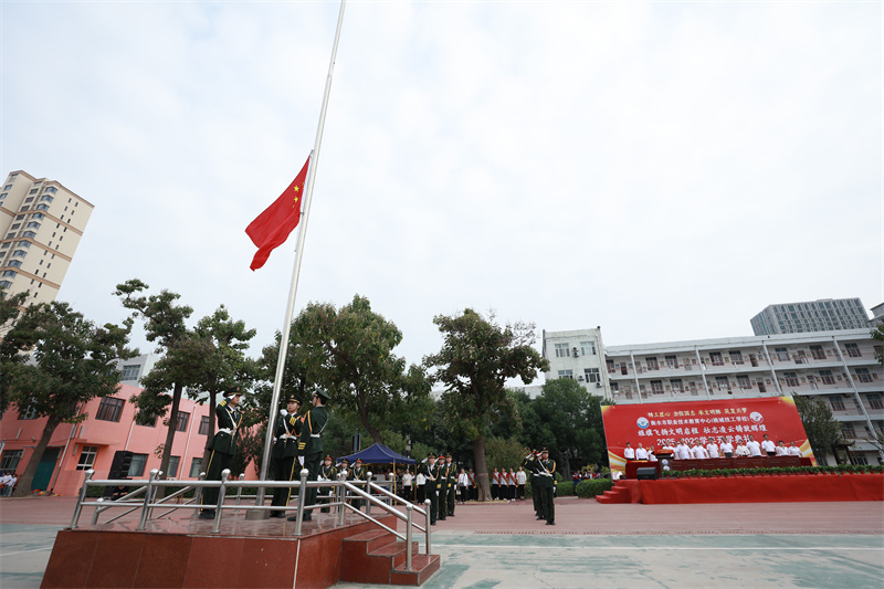庄严的升旗仪式,为这场新生开学典礼拉开了序幕。随后,副校长李建雨、教师代表王宁、优秀毕业生殷亚蕊、付春博为全体同学们送上祝福,寄予希望。2023级回文君、2025级赵梦媛同学分别代表老生和新生发言。